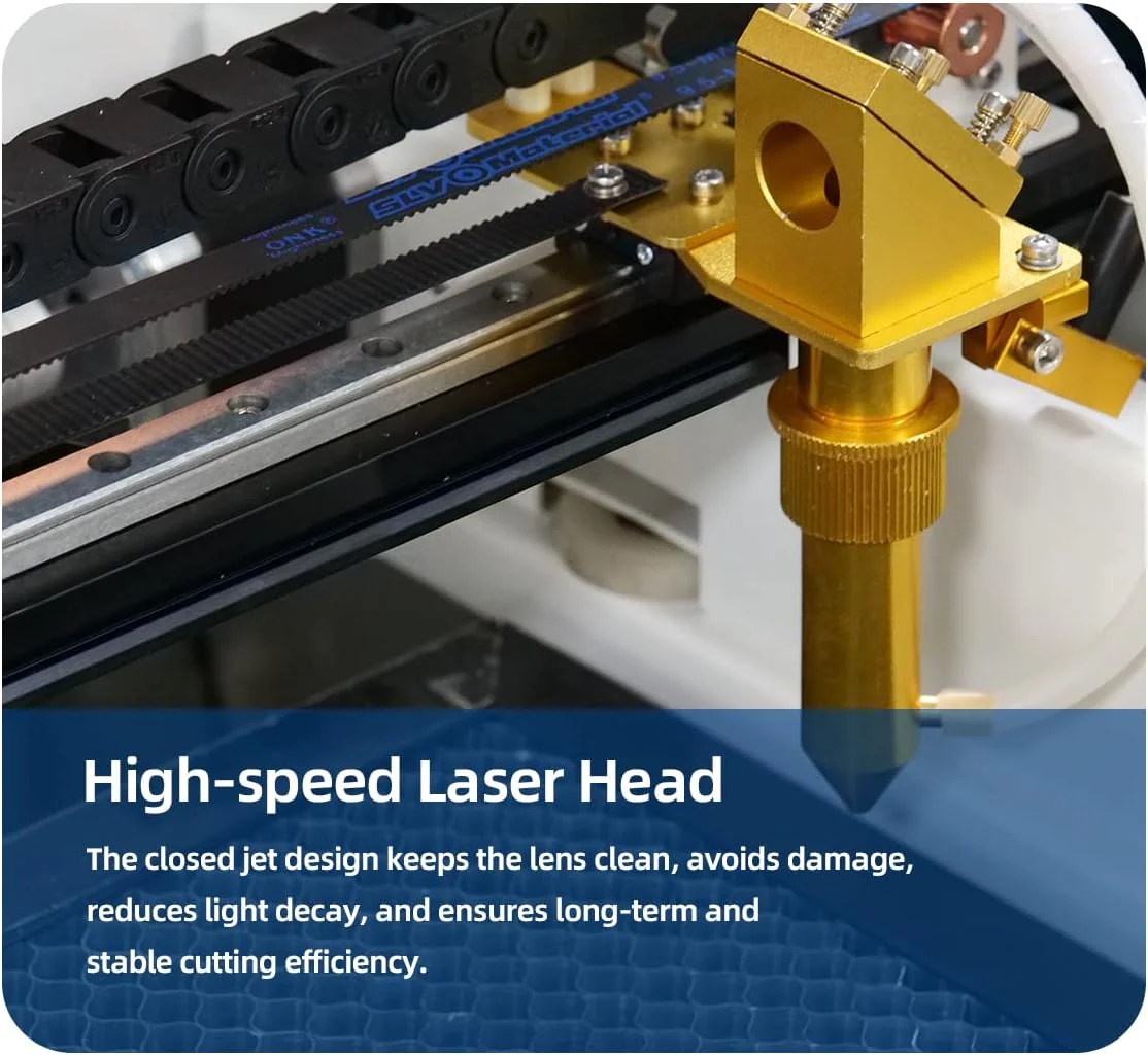 - Our Advantages: The laser engraving and cutting machine adopts high-speed laser head, closed jet design keeps the lens clean, avoids damage; RUIDA Control System, support LightBurn software, work offline; well-known brand laser tubes such as RECI and Yongli, with stable power output, good spot pattern and long life